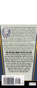 The Ritual Wine Tastes of Evil. When lovely Cara Quayne dropped dead to the floor after drinking the ritual wine at the House of the Sacred Flame, she was having a religious experience of a sort unsuspected by the other initiates. Discovering how the fatal prussic acid got into the bizarre group's wine is but one of the perplexing riddles that confronts Scotland Yard's Inspector Rocerick Alleyn when he's called to discover who sent this wealthy cult member to her untimely death.